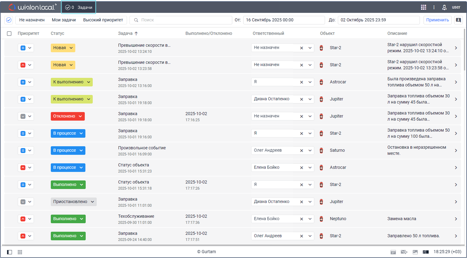 Вкладка Задачи позволяет оптимизировать ваш рабочий процесс. Здесь вы можете находить все задачи и получать информацию о них, управлять ими, связываться с водителями и выполнять другие действия.