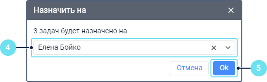 Чтобы отменить выбор сотрудника для нескольких задач сразу, выполните шаги 1−3 из предыдущей инструкции, в открывшемся окне выберите Не назначен и нажмите ОК.
