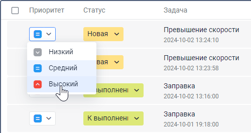 Чтобы изменить приоритет одной задачи, щелкните по полю в столбце Приоритет и выберите необходимый вариант: низкий, средний или высокий.