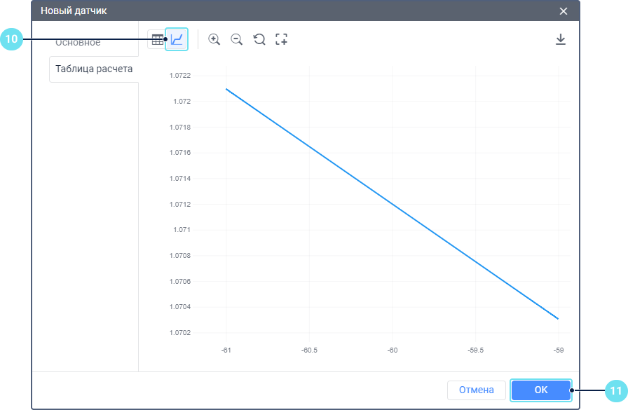 - Если необходимо увидеть результат расчета на графике, нажмите на иконку
