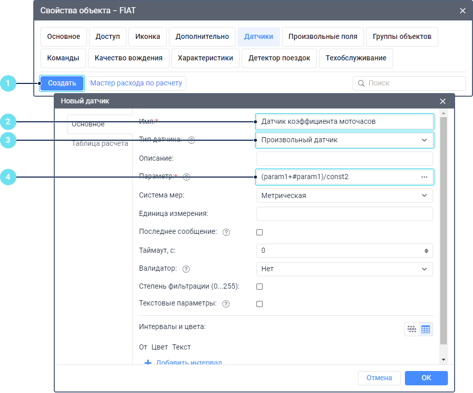 Чтобы создать датчик коэффициента моточасов, выполните следующие шаги: