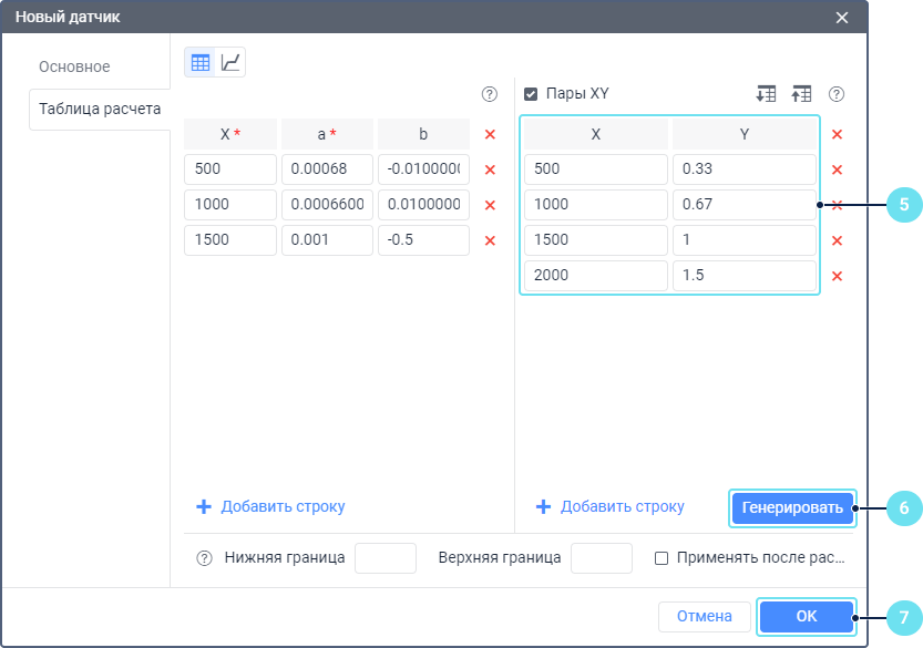 - преобразование значения по таблице расчета (если настроена),