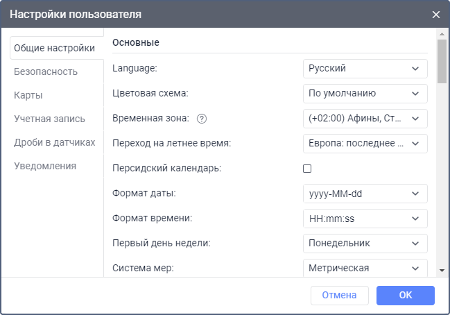 Настройки пользователя