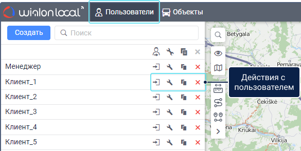 Пользователи необходимы при создании новых элементов в системе. Вы можете создать элемент от имени какого-либо пользователя или в принадлежащем ему ресурсе. Информация о том, какому ресурсу или учетной записи принадлежит элемент (геозона, водитель, объект и т. д.) показывается во всплывающей подсказке к элементу или в окне его свойств.